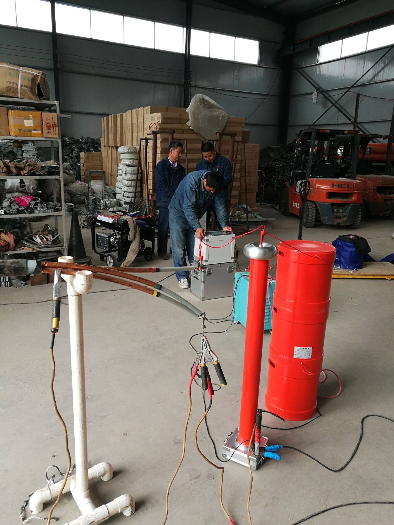 接下來李工對客戶提出疑問的地方,現場給予細心,準確的解答。隨后,又與客戶一起到現場對被試品進行了試驗,指導客戶完全熟悉和掌握了儀器操作、試驗流程。
