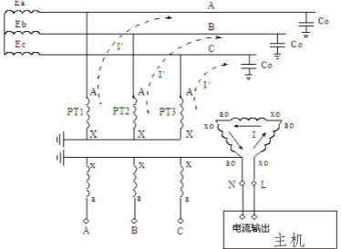 測試儀是從PT 開口三角側(cè)來測量配網(wǎng)的電容電流的。其測量原理如圖所示。