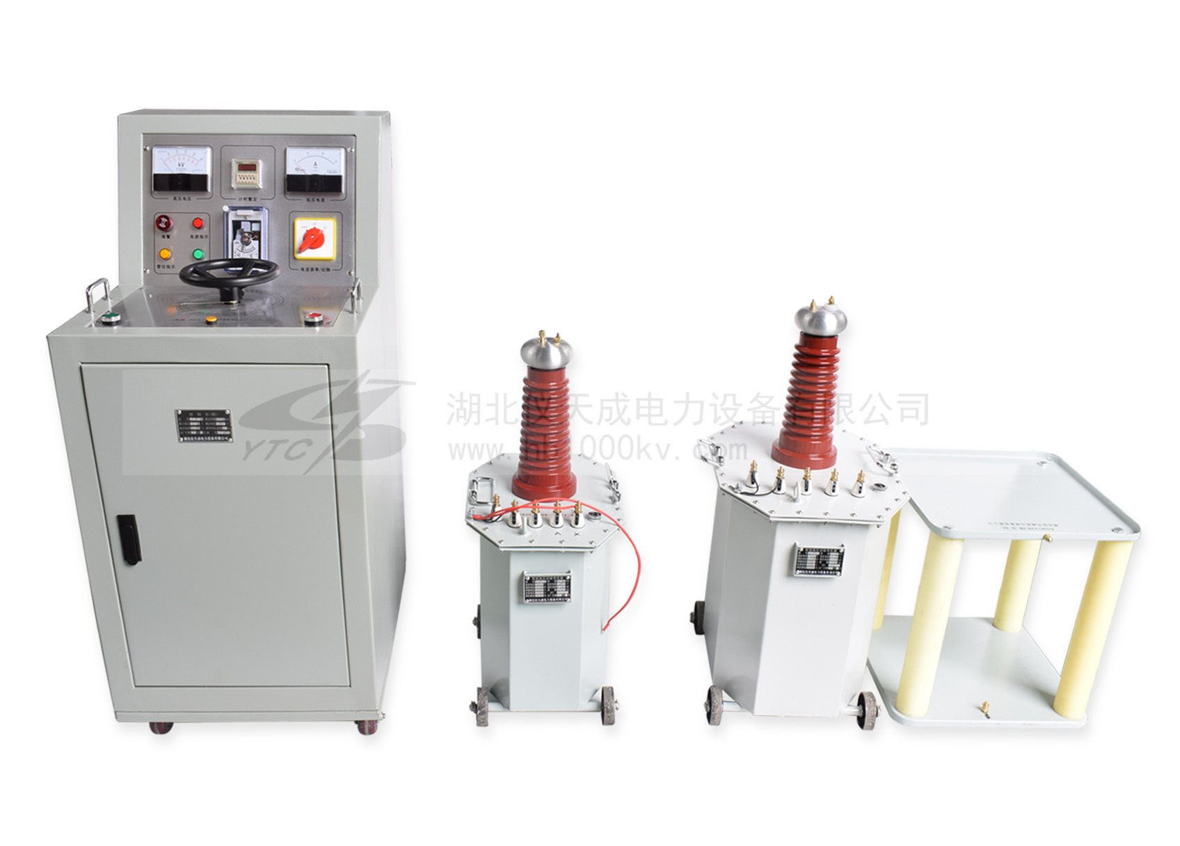 試驗變壓器和普通電力變壓器的原理相同,所不同的是試驗變壓器的工作電壓高、使用時間短、溫升小,一般沒有散熱器。另外,試驗變壓器的負載較小,且多為電容性負載。試驗變壓器的容量比電力變壓器的容量相對的要小。